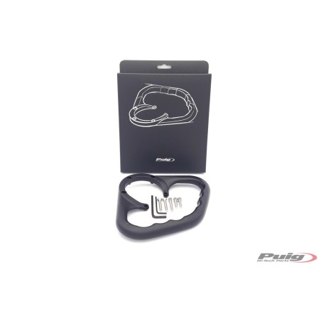Mejora la comodidad y el agarre a la motocicleta de tus acompañantes con los asideros universales Puig. Fabricados en aluminio ligero y pintura EPOXI negra será el mejor complemento para mejorar el viaje del pasajero de tu moto, cuidando y conservando la estética de tu vehículo al máximo. Los asideros son fijados, mediante tornillos, al tapón del depósito de la moto. El modelo que mejor encaje con su vehículo lo determinará el número de tornillos necesarios para la fijación al tapón del depósito. Es recomendable que se compruebe el número de tornillos para la fijación de la pieza en su moto antes de efectuar la compra del producto