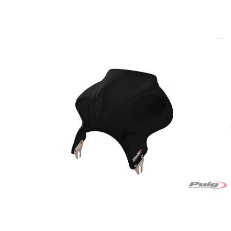 Renueva el carenabrís de tu moto con el nuevo carenabris Cockpit de la línea de Puig Street Screens para faro redondo.  Gracias a su particular diseño, se trata de un carenabris que destaca por su calidad y facilidad de montaje. Fabricado en policarbonato, se mostrará férreo y resistente ante posibles impactos y ampliará la capacidad aerodinámica de la moto. Además de su resistencia, el carenabris Cockpit tiene como misión aportarle un toque diferenciador a tu moto y está disponible en un amplio abanico de colores: rojo, amarillo, azul, negro, transparente, ahumado y ahumado oscuro. Puig dispone de un modelo de carenabris universal adaptable a la gran mayoría de motocicletas con faro redondo, pero para algunos modelos específicos está disponible un kit especial de adaptación. El montaje del carenabris Cockpit es una tarea fácil, gracias a sus dos puntos de sujeción, y viene acompañado de un folleto de instrucciones muy visuales. El carenabris Cockpit es un producto certificado por el TÜV alemán y tiene la homologación ABE 38188.
