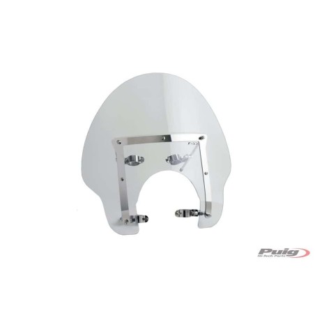 El modelo carenabris America II es universal y está disponible para la gran mayoría de motos Custom con faro redondo. Su fijación a la moto será perfecta, ya que contiene 4 puntos de sujeción y viene acompañado de un completo kit de montaje. En caso de que tu modelo de moto lo requiera, Puig también sirve un kit de herrajes para adaptar el carenabris a aquellas referencias más específicas.
