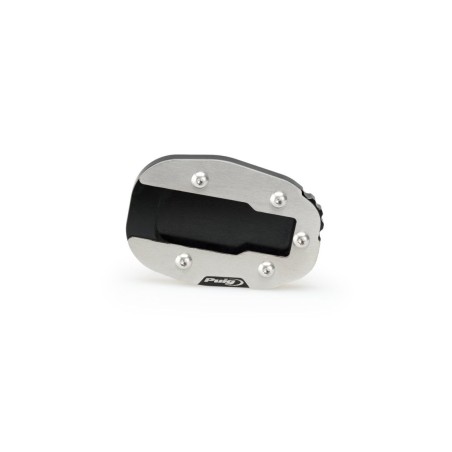 Diseñada para prevenir posibles caídas de la moto mientras se encuentra estacionada. Esta pieza, con una base un 100% más amplia respecto a la original permite estacionar en superficies blandas o irregulares con mayor seguridad. Se trata de una pieza mixta, con una parte en acero inoxidable y otra mecanizada a partir de un bloque de aluminio con anodizado posterior. Estos materiales aportan una gran resistencia manteniendo un peso reducido (110-160g según modelo). Este producto evitará que la motocicleta pueda sufrir cualquier percance cuando no está en uso.