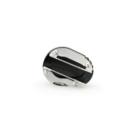 Diseñada para prevenir posibles caídas de la moto mientras se encuentra estacionada. Esta pieza, con una base un 100% más amplia respecto a la original permite estacionar en superficies blandas o irregulares con mayor seguridad. Se trata de una pieza mixta, con una parte en acero inoxidable y otra mecanizada a partir de un bloque de aluminio con anodizado posterior. Estos materiales aportan una gran resistencia manteniendo un peso reducido (110-160g según modelo). Este producto evitará que la motocicleta pueda sufrir cualquier percance cuando no está en uso.