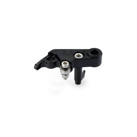 Herrajes mecanizados a partir de un bloque de aluminio Ergal 7075 de altas prestaciones y anodizados en color negro. Son la transmisión perfecta para conectar nuestras manetas con los soportes originales de la motocicleta.