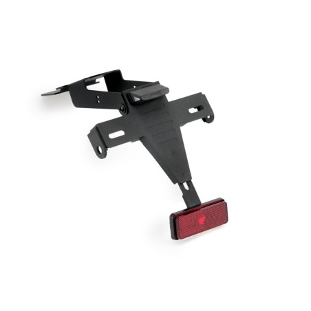 Sustituye el portamatrículas original de tu moto por el soporte porta matrículas de Puig, que gracias a su ubicación elevada confiere un aspecto deportivo a tu motocicleta. El conjunto combina piezas de acero con acabado en pintura epoxi y piezas de poliamida, logrando una notable reducción de peso en comparación con el soporte original.