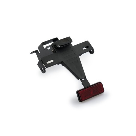 Sustituye el portamatrículas original de tu moto por el soporte porta matrículas de Puig, que gracias a su ubicación elevada confiere un aspecto deportivo a tu motocicleta. El conjunto combina piezas de acero con acabado en pintura epoxi y piezas de poliamida, logrando una notable reducción de peso en comparación con el soporte original.