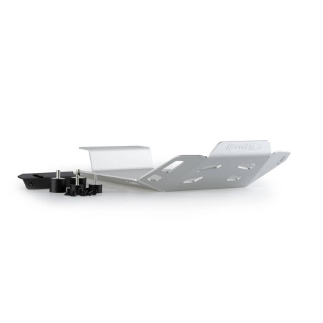 La parte inferior del protector es totalmente plana, lo que facilita levantar la moto en el taller mecanico desde la parte inferior si es necesario, y dispone de agujeros para garantizar una buena refrigeración y evacuar el agua, barro, o pequeñas piedras acumuladas. Además de facilitar la operación del cambio de aceite evitando quitar el protector.