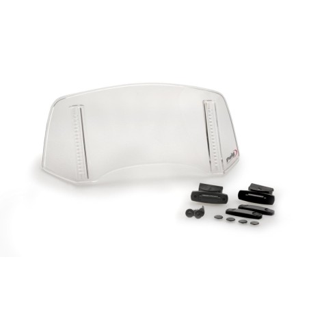Su especial diseño y medidas (300mm de ancho y 130mm de alto) son óptimas para actuar como pantalla ante las rachas de viento, desviándolo de zonas sensibles como el casco y el torso del piloto. Además, evita posibles turbulencias y sonidos que puedan molestar o distraer en la conducción. El usuario podrá adaptar la visera en hasta 4 posiciones de rotación, que junto con las guías que permiten regular su altura en 100, se convierten en infinidad de posiciones que permiten ajustarla a su altura o preferencias.
